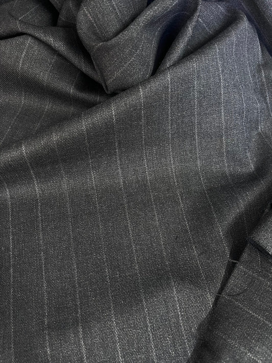 Italian Stretch Wool Twill Suiting - Grey Stripe
