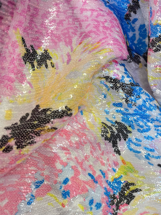 Embroidered Sequin Mesh - Bright Modern Floral