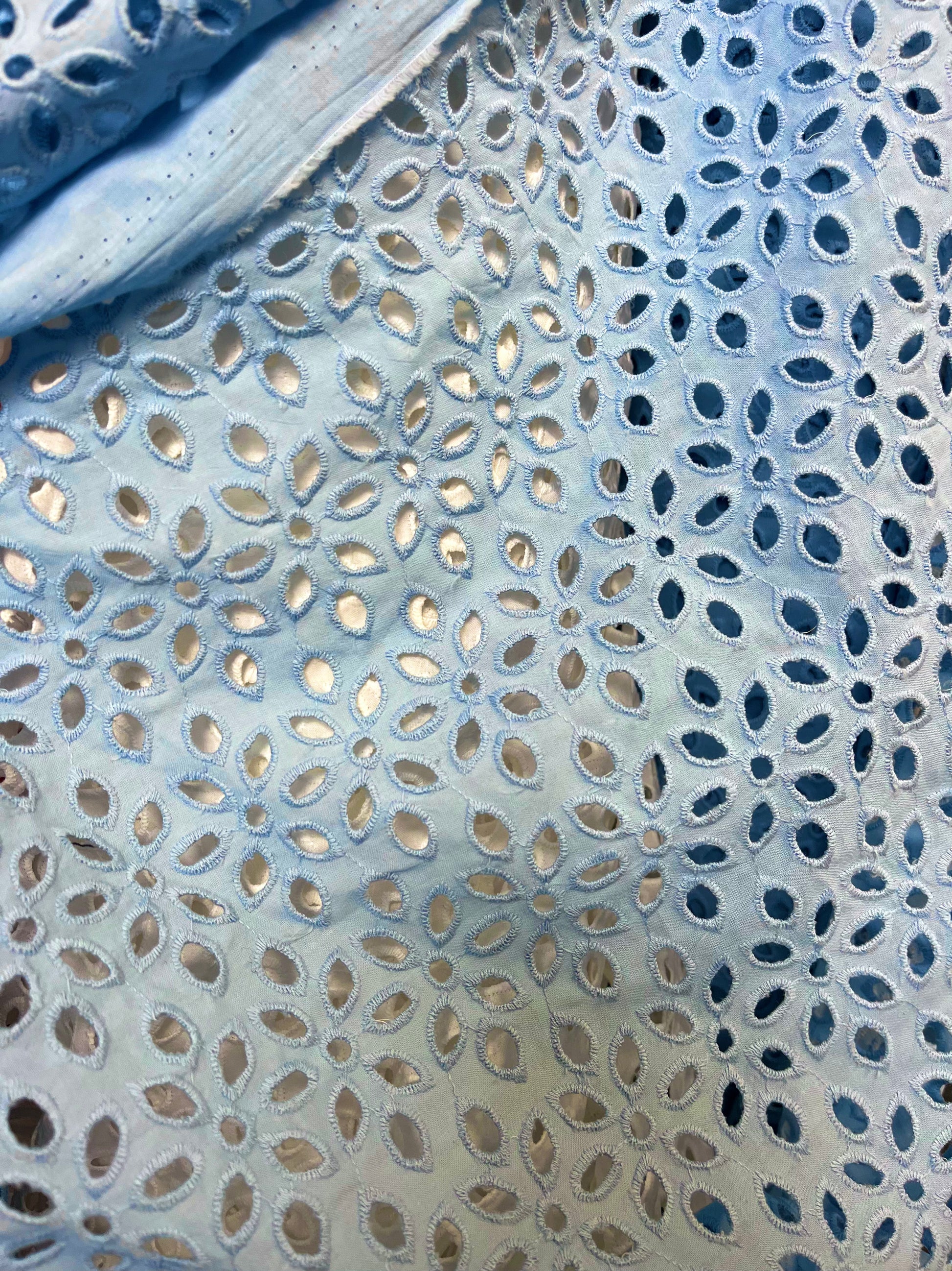 Flower Eyelet Embroidered Cotton - Sky Blue