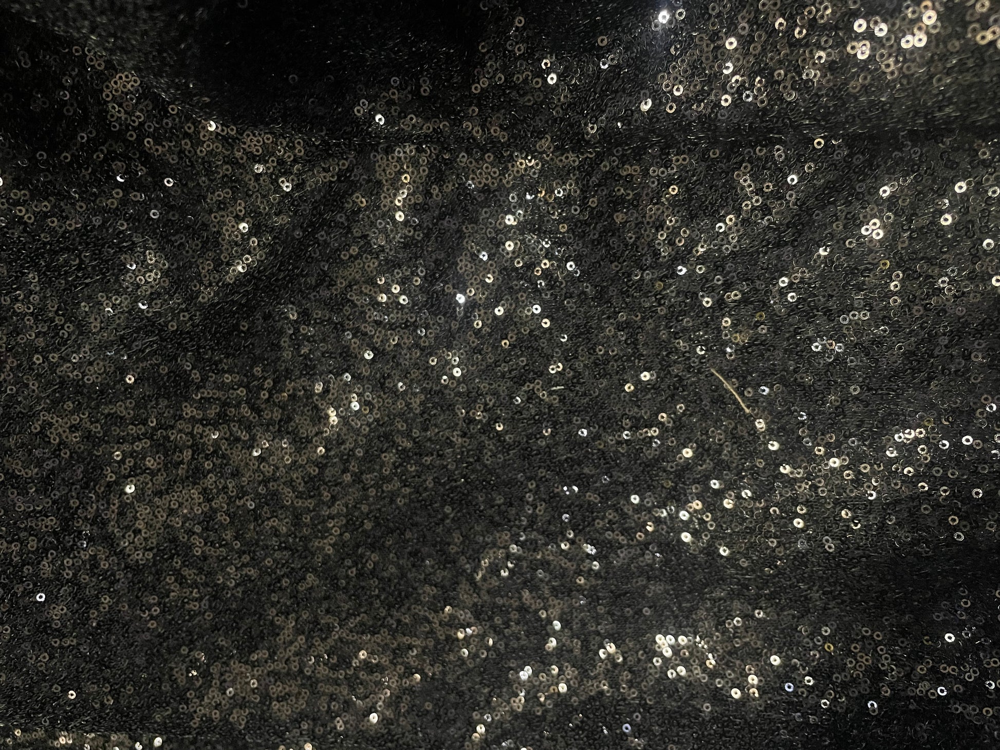 Shine in this beautiful black sequin mesh. These sequins rest on a very soft and luxurious black polyester mesh fabric. This fabric would make a lovely holiday dress or an extra excitement to whatever you are making!