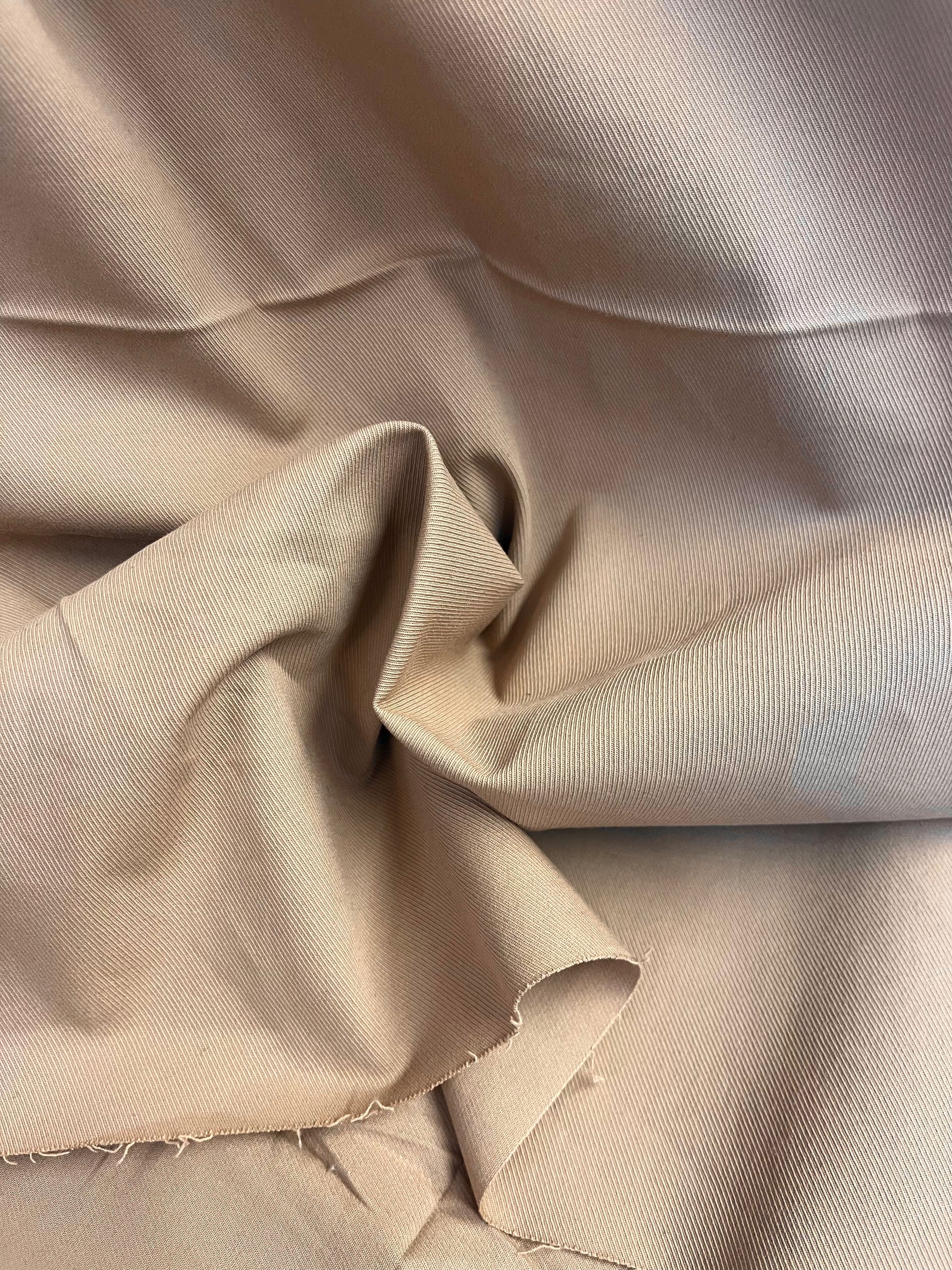 Explore the versatility of cotton twill fabric, an ideal blend of durability and softness. This fabric comes in a traditional khaki color. Perfect for the transition from summer to fall, this fabric is apt for crafting dresses, pants, jackets, and more.