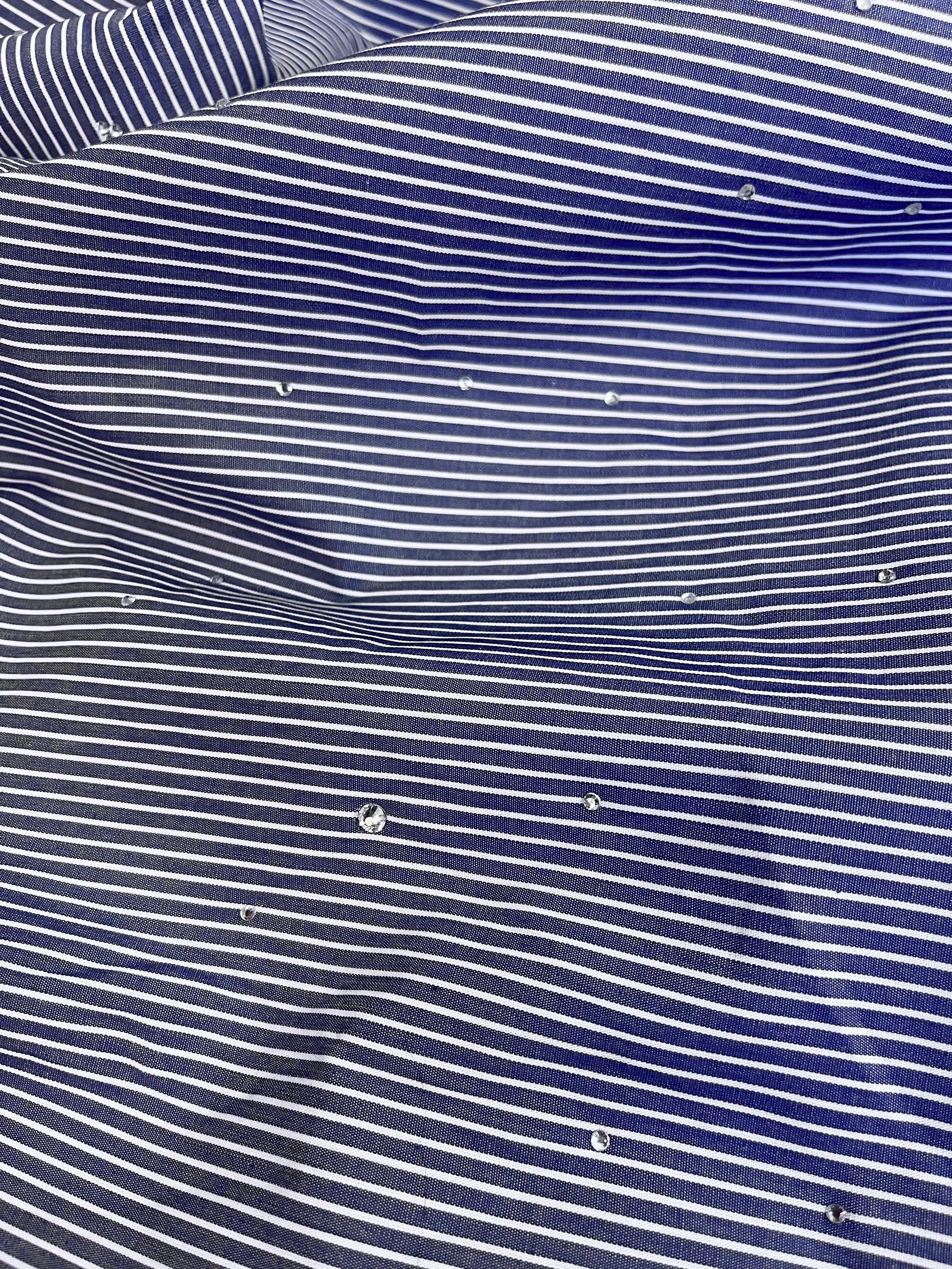 Rhinestone Stripe Cotton Shirting - Blue & White
