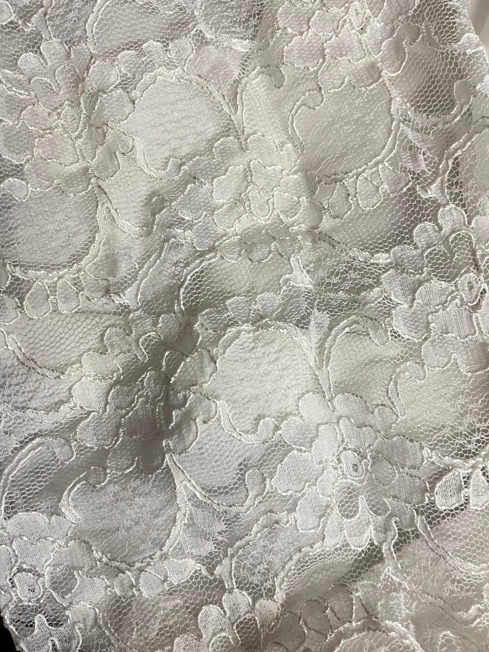 This high-quality novelty lace has beautiful, corded detail framing the edges of its floral design. This fabric has a slight stretch throughout. An elegant choice for a dress, top, skirt, even an unlined jacket.