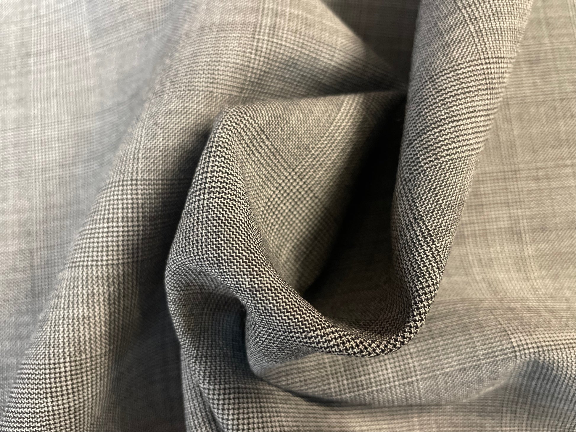 Italian Fine Plaid Tropical 100% Virgin Wool Suiting - Grey / Off White