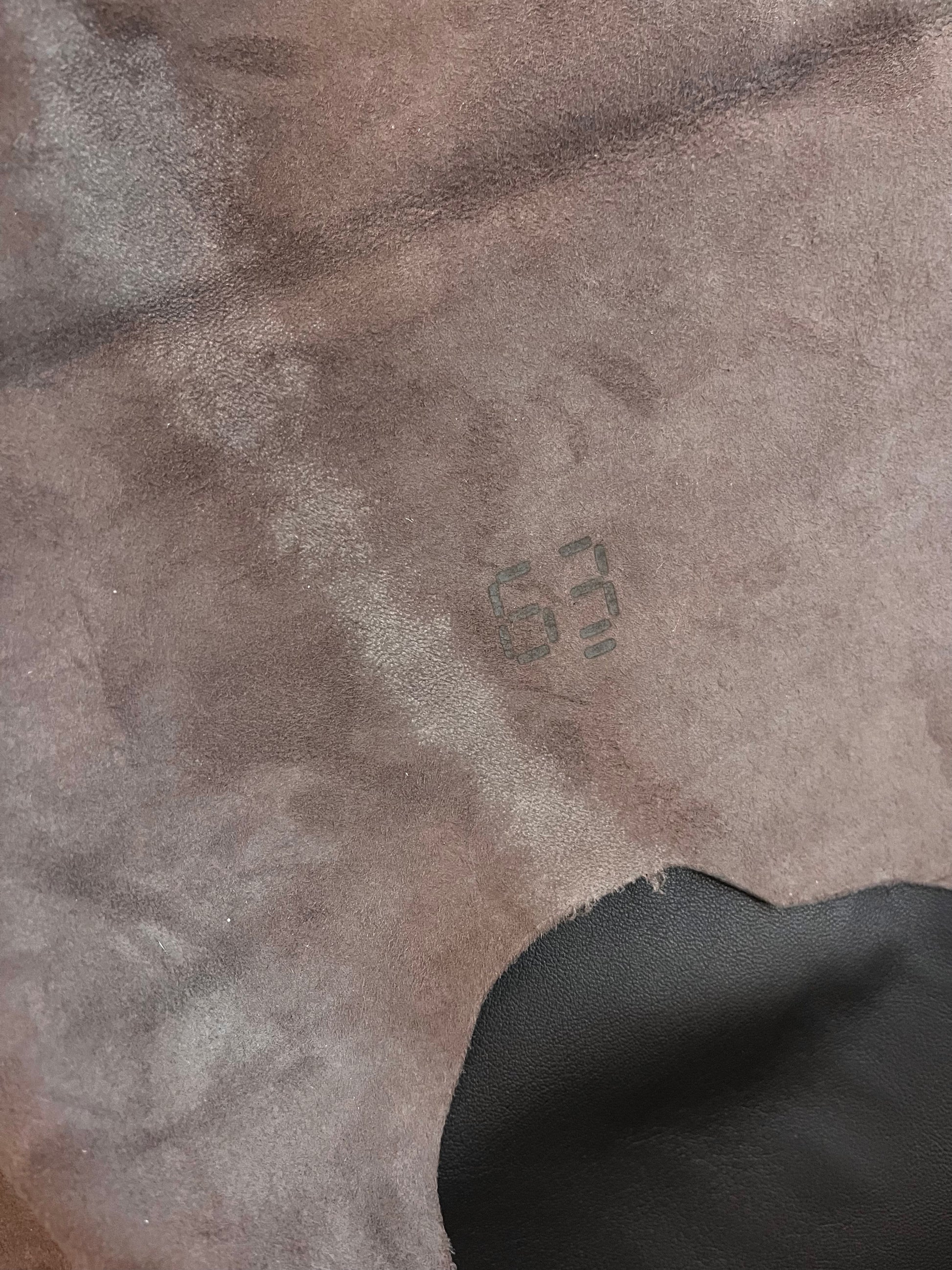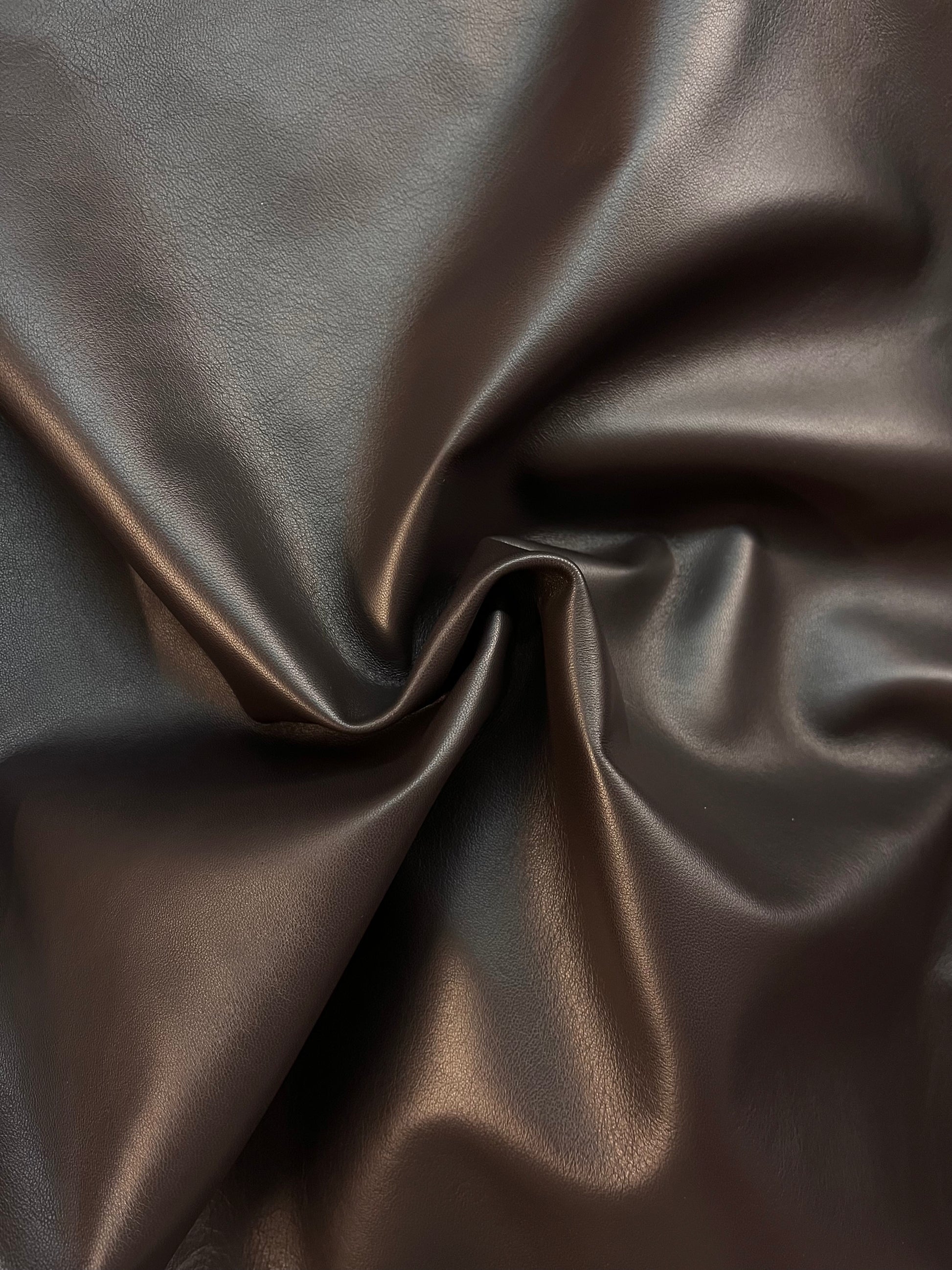 This is genuine Italian lambskin features the soft Italian leather feel. This leather has a soft suede finish face and a smooth leather face. It is a lovely espresso brown color in a versatile light/medium weight that is easy to sew with! It is sold by the skin; each piece is approx. 26 x 32 Inches or 60 square in.