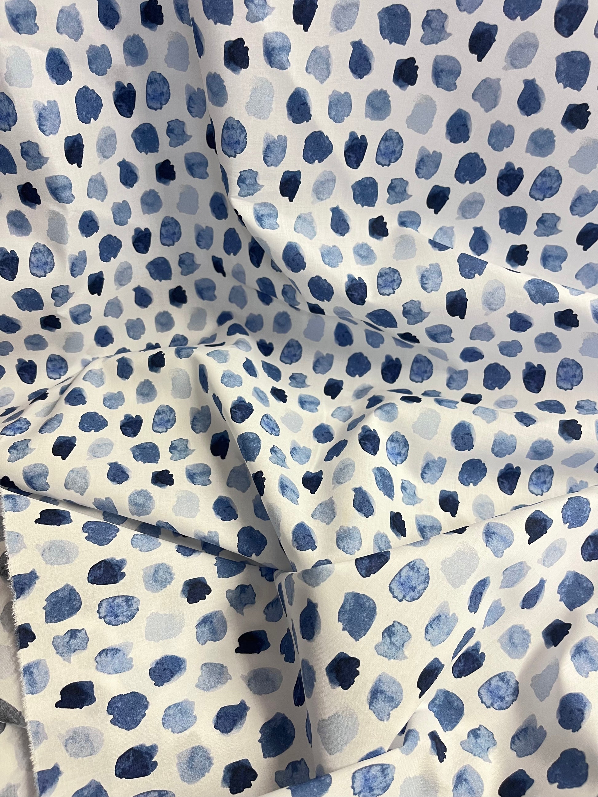 Italian Cotton Print - Watercolor Polka Dot - White & Blue