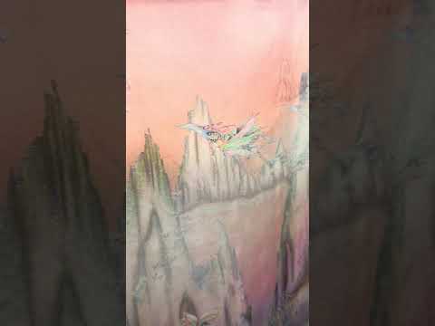 THIS FABRIC IS SOLD BY THE PANEL - EACH PANEL IS 35 INCHES ~1YD This is a very unique printed silk chiffon, imported from Italy. Featuring a panel vignette of a surrealist landscape, printed with vibrant colors & fantasy elements. Please see video for full detail. This one-of-a-kind fabric is great for scarves, overlays, caftans and more!