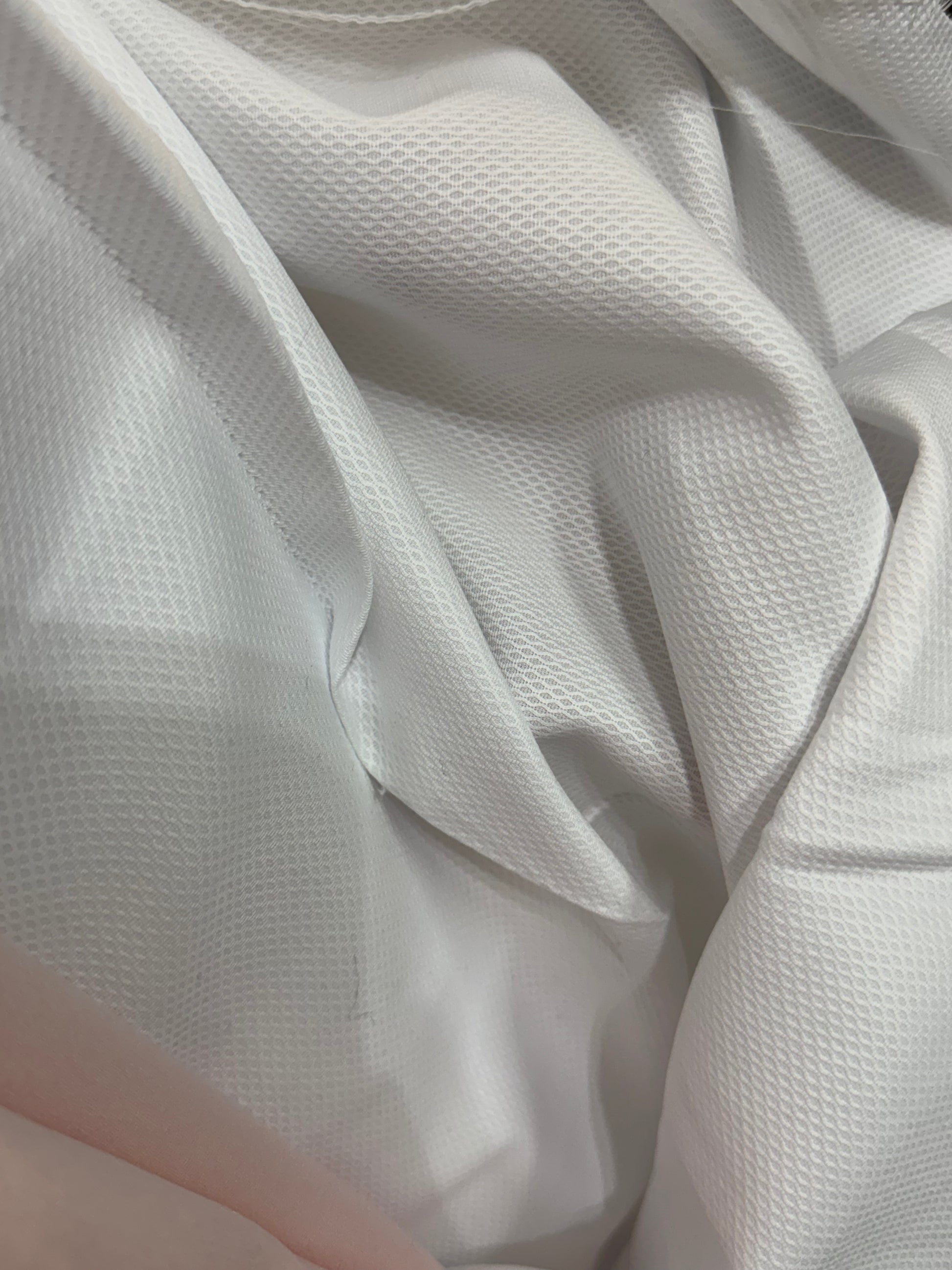 Italian Textured Cotton Pique - White is a refined fabric choice for discerning designers and makers. This exceptional pique cotton showcases a distinctive textured weave that delivers both visual interest and tactile appeal. The fabric's inherent softness is complemented by its malleable drape, allowing for graceful movement and elegant silhouettes. With subtle weft-wise stretch, it offers comfort without compromising structure, making it ideal for elevated athleisure pieces, tailored polos, refined tennis wear, and sophisticated sporty dresses. The pique construction provides dimensional texture that elevates casual designs into polished, contemporary pieces. Whether you're crafting performance-inspired garments or elevated everyday wear, this Italian cotton delivers the quality and versatility that distinguishes professional-grade textiles. Perfect for designers seeking premium materials that balance comfort, durability, and aesthetic sophistication.