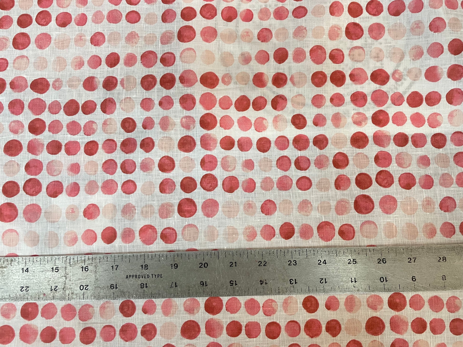 Italian Linen Print - Watercolor Polka Dot - White & Red