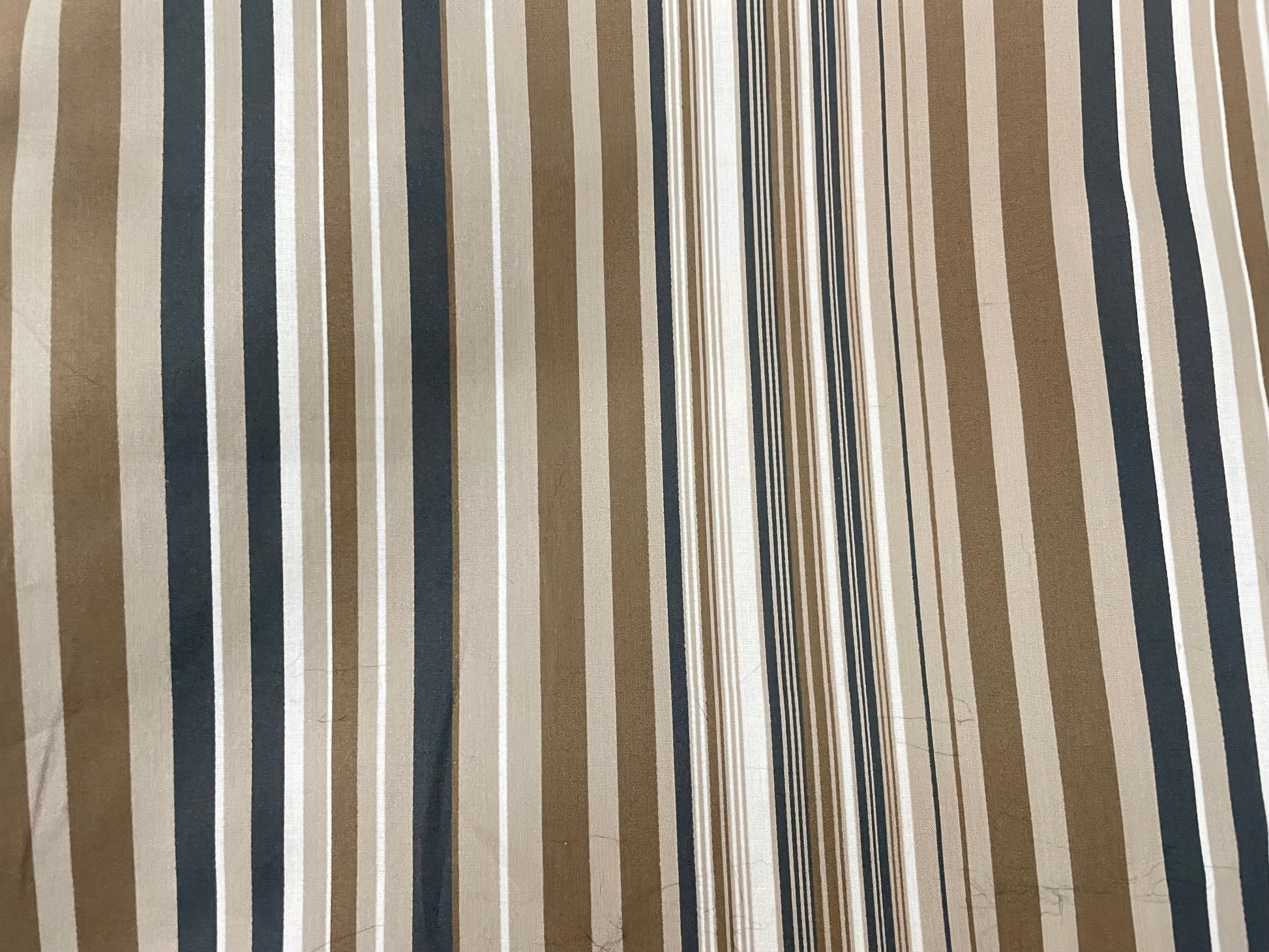 This is a classic cotton stripe that is soft with a lightweight with a stripe print on one side. Calming, browns, beiges & black come together in this varying stripe print. This beautiful quality is perfect for a shirt, dress, skirts and much more!