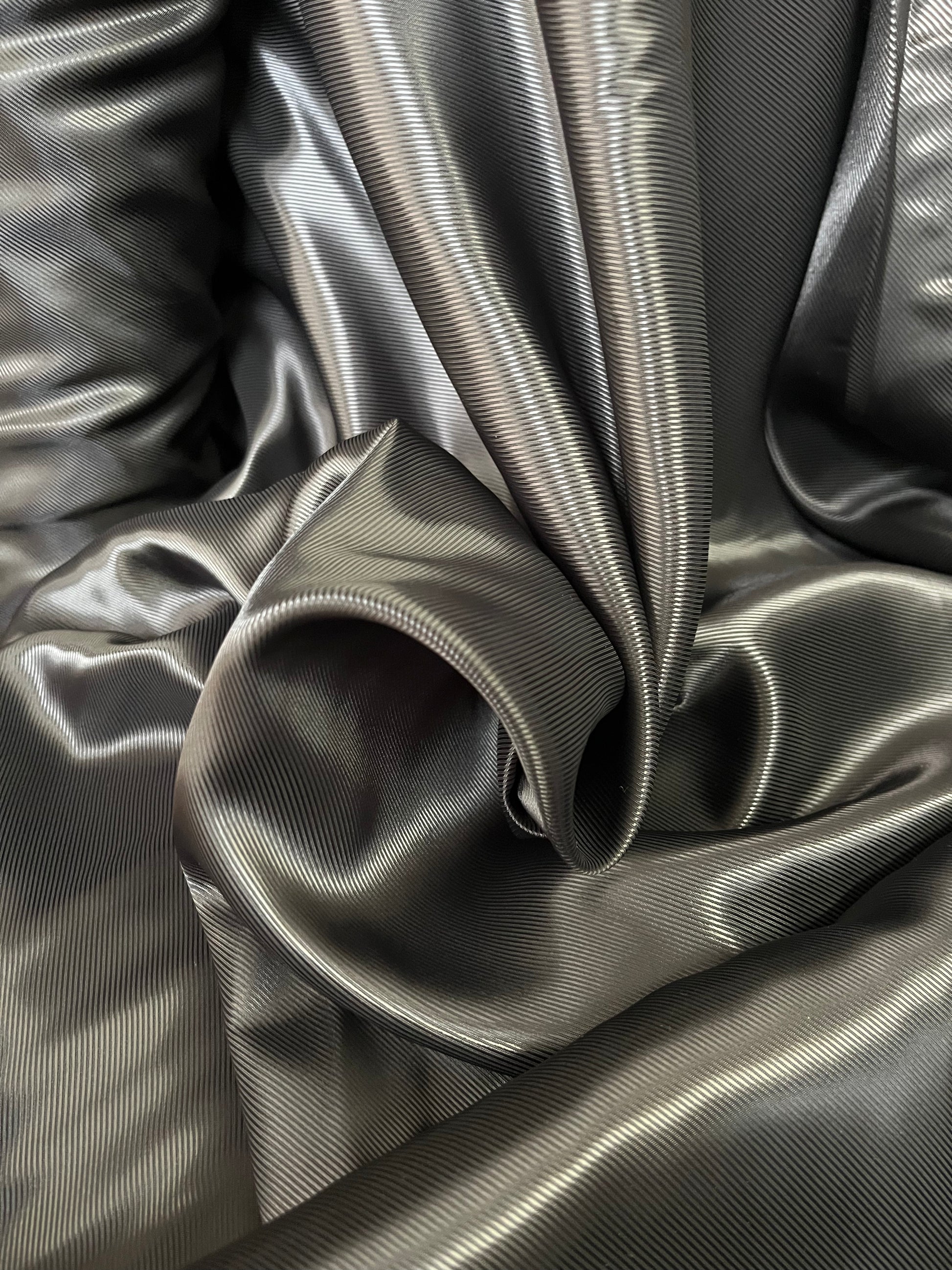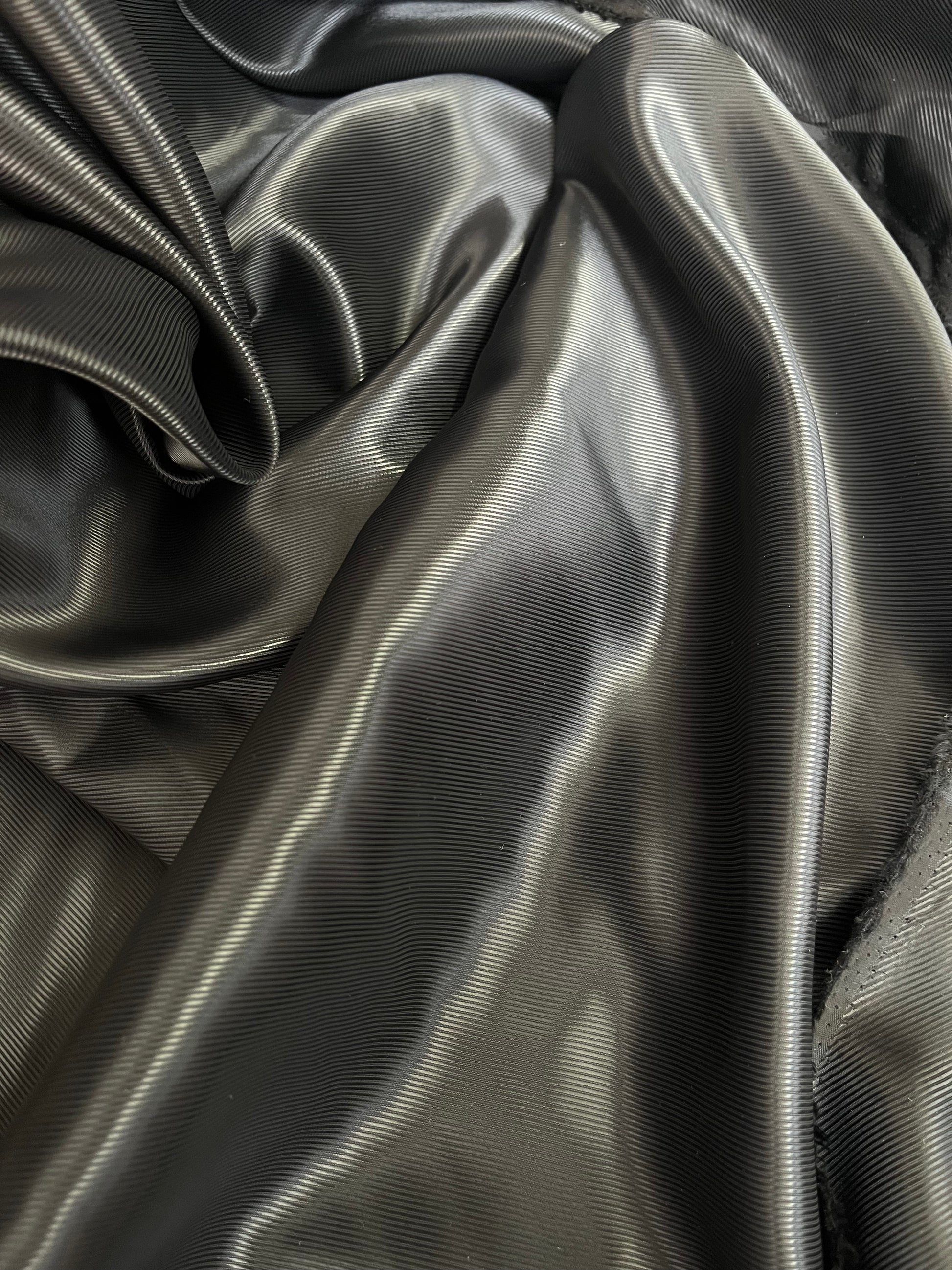 This shiny poly twill lining is an exciting accent for a variety of projects. Black poly is woven together in a twill weave to create this eye-catching fabric. Crafted from 100% polyester, this fabric offers a smooth, durable texture with a subtle sheen that adds depth and elegance to any garment or accessory.